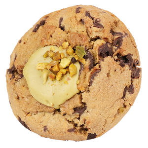 Indulge in a rich dark chocolate cookie, filled with creamy pistachio goodness, and crowned with a sprinkle of crushed pistachios, it’s AMAZING.