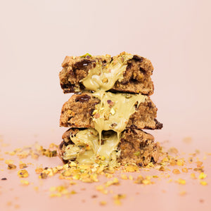 Pistachio knafeh cream, roasted pistachios, and milk chocolate. Sweet, nutty, and just the right amount of indulgent, Dubai favourite in Gold Coast Cookies style!