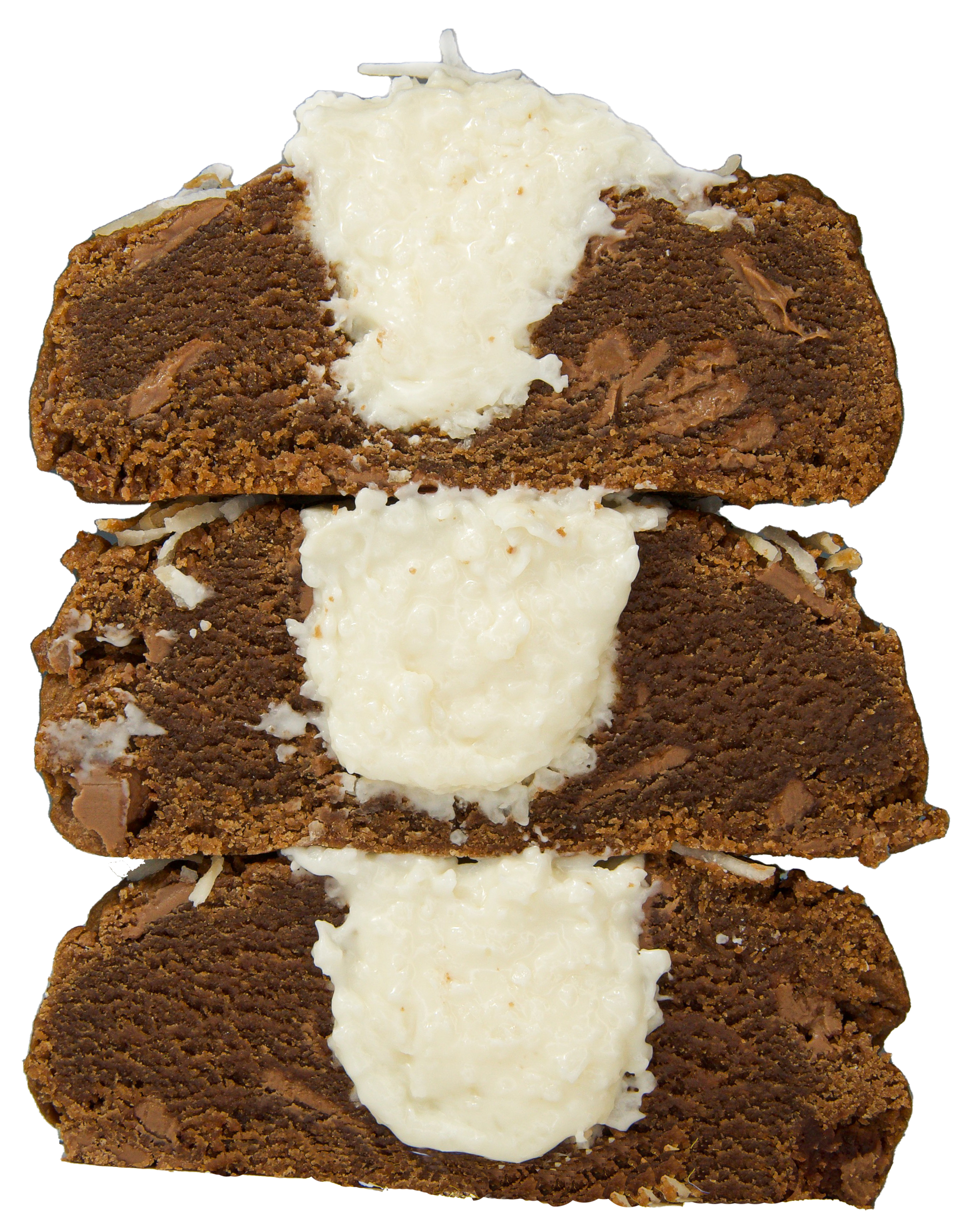 Discover the richness of our ‘Buena’ Filled Cookies, where a luxuriously creamy white hazelnut filling meets the delightful crunch of hazelnut pieces, all embraced by the perfect blend of Belgian White and Milk Chocolate!